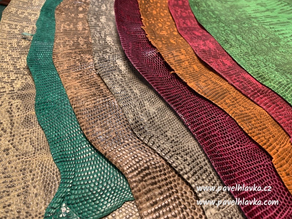 Řemínek / pásek je vyroben z pravé ještěrčí kůže a je prošitý po celé délce jemným sedlářským stehem.